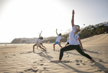 Dzięki dużej liczbie słonecznych dni Fuerteventura jest doskonałym miejscem do praktyki jogi na świeżym powietrzu – zarówno o wschodzie, jak i zachodzie słońca.